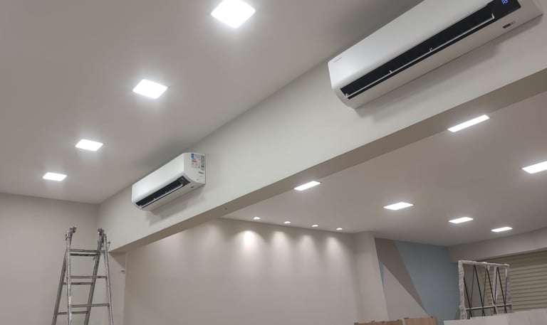 Trabalhamos com instalação de sistemas Split, Multi Split, Piso Teto, Cassete (K7) e VRF, com análise do ambiente, dimensionamento adequado, posicionamento correto dos equipamentos, interligações frigorígenas e elétricas, vácuo do sistema, testes de funcionamento e acabamento técnico.